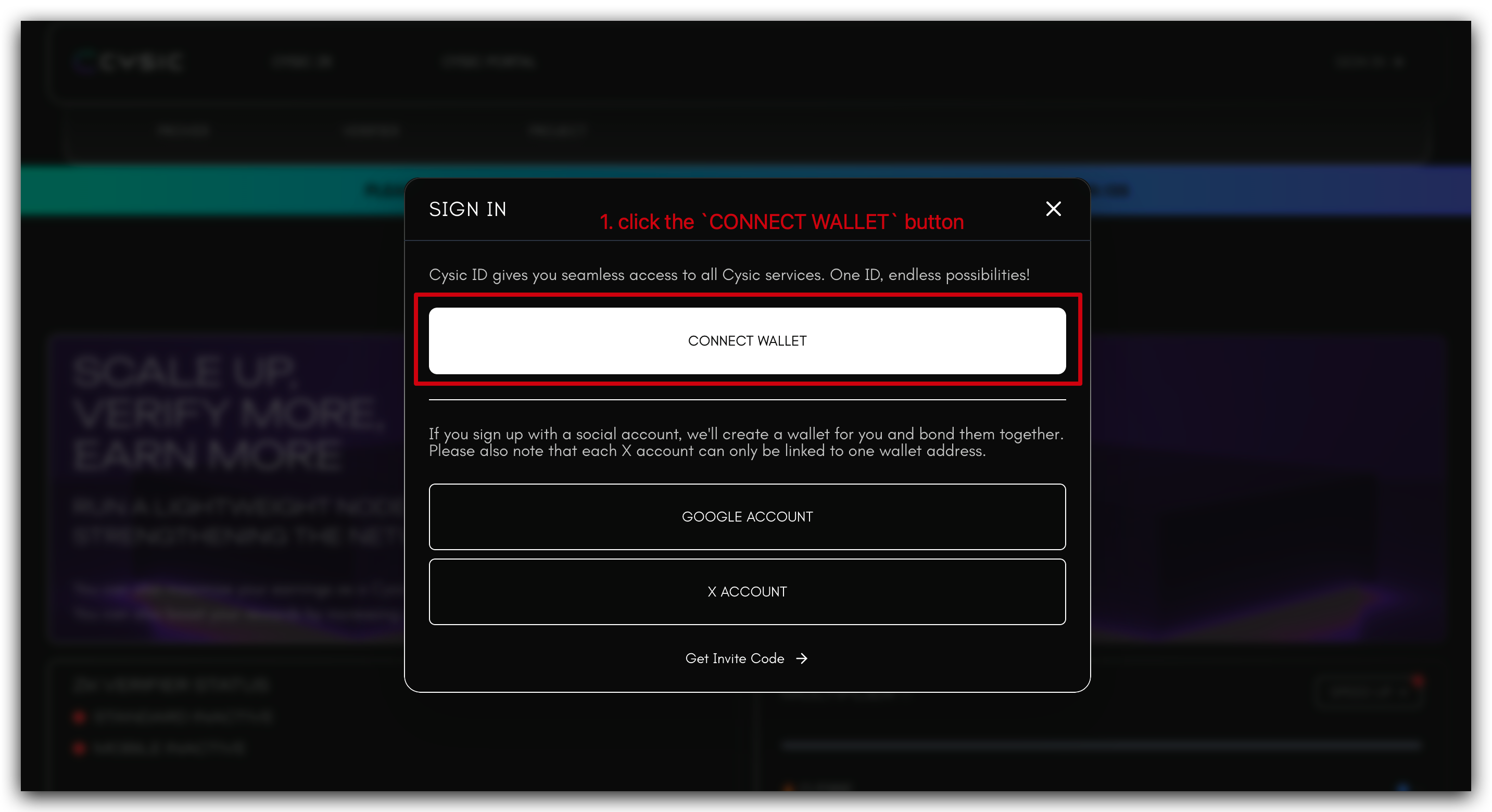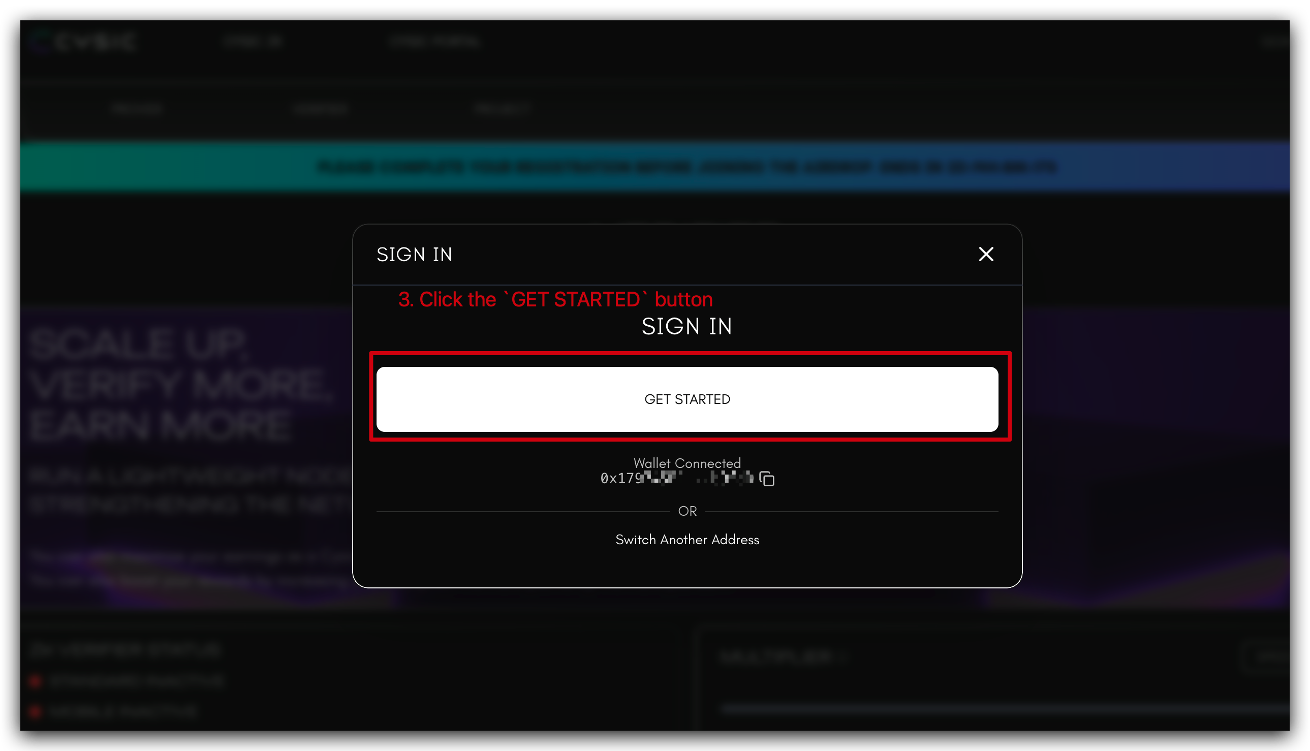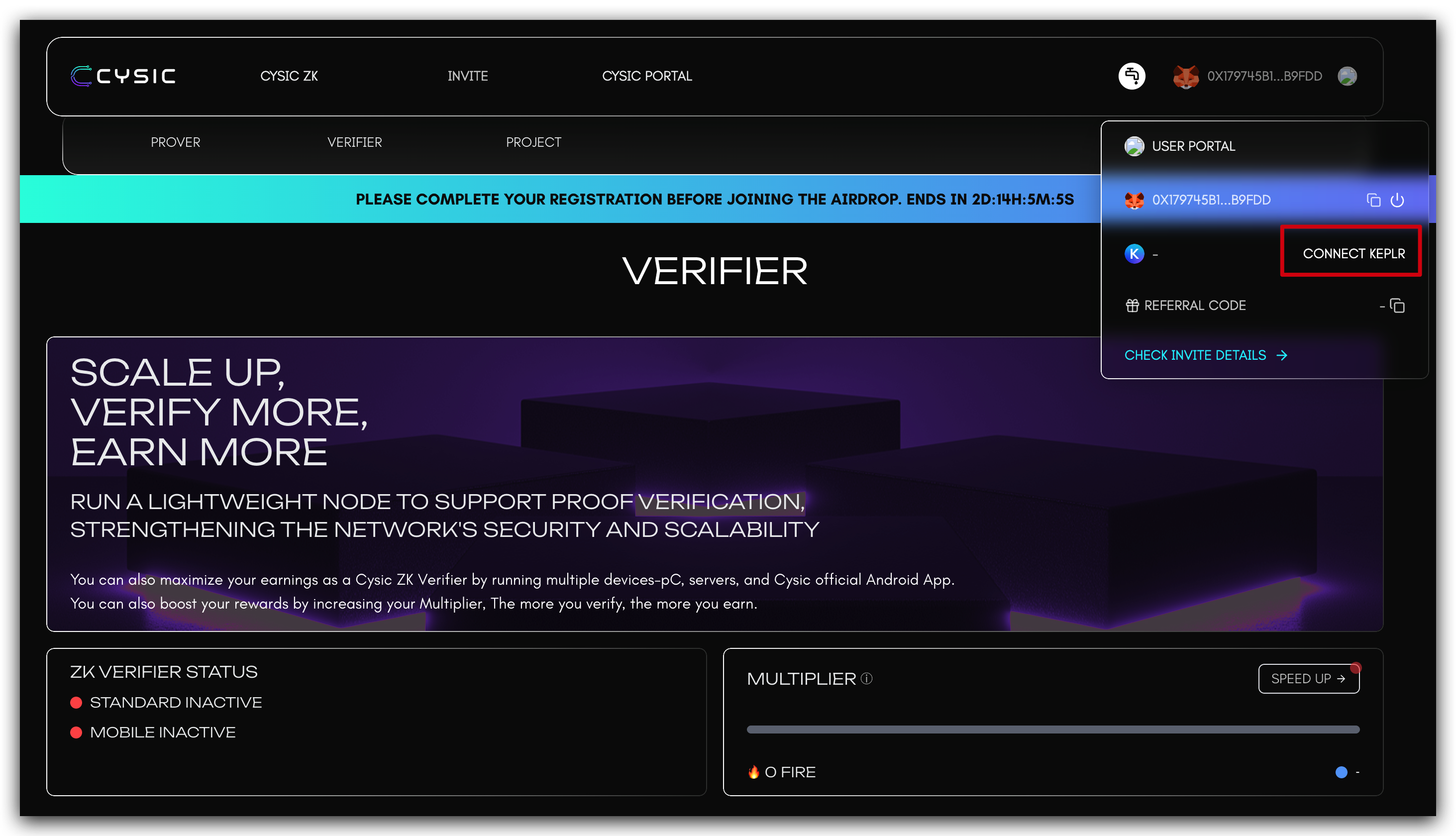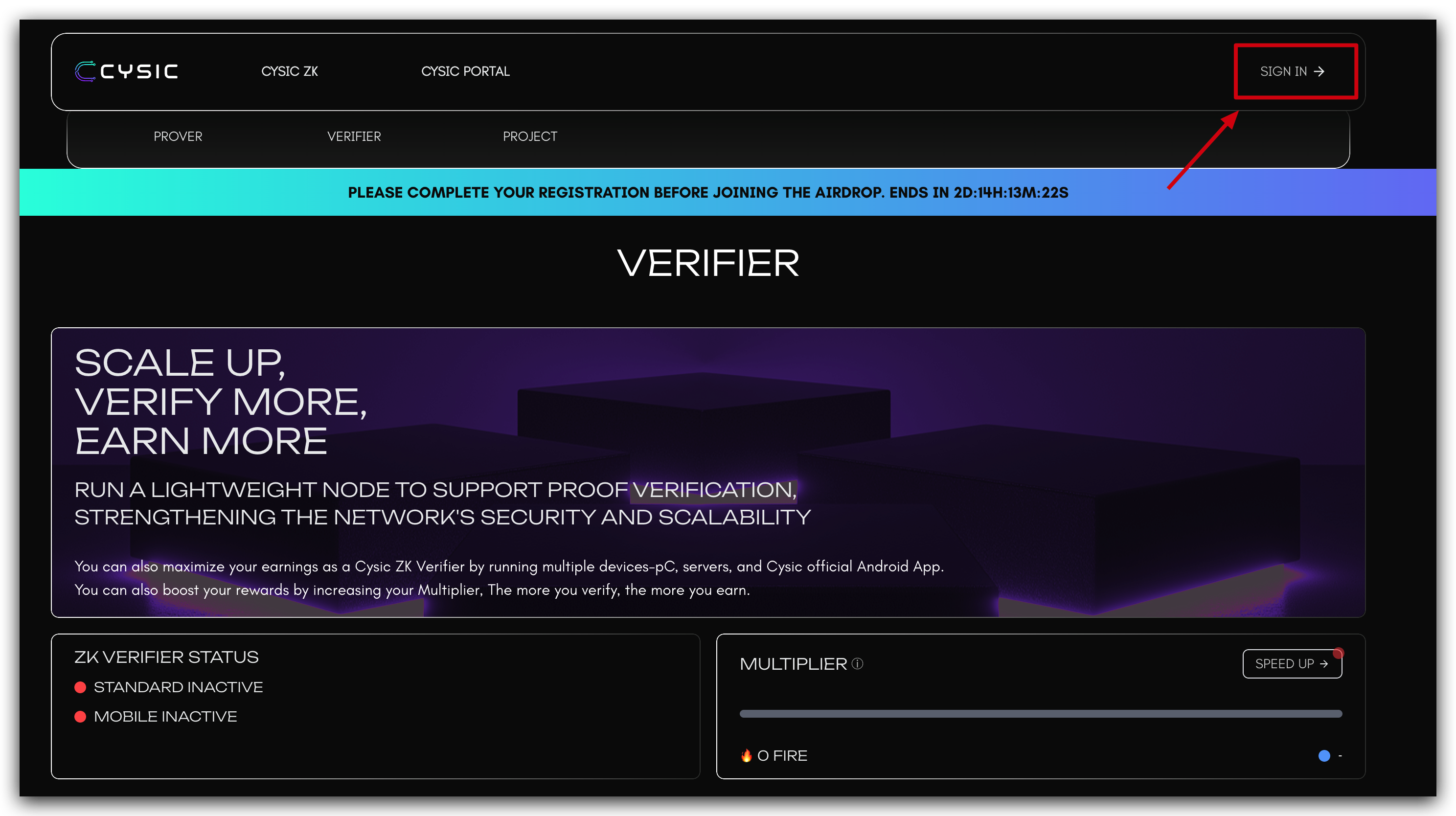- Access the Cysic Mainnet Portal: Navigate to the official Cysic Mainnet Website: https://app.cysic.xyz/verifier